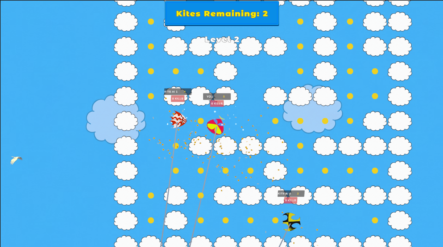 Choose from a variety of colorful and unique kites, each with its own flair and flight style. Glide through vibrant skies, collect coins, and battle rival kites in fast-paced aerial duels. When you collide, the kite with more coins wins — cut their string and rise as the ultimate sky champion!